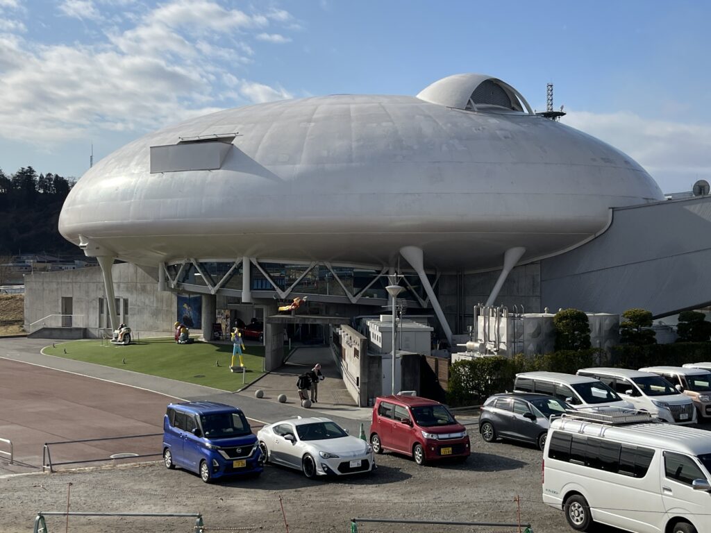 石巻の町の近くにある石ノ森萬画館です。石ノ森章太郎が生んだ仮面ライダーやサイボーグ009などのキャラクターがたくさんいます。行ったときは、忍たま乱太郎の原画展が行われ、たくさんの人が来ていました。