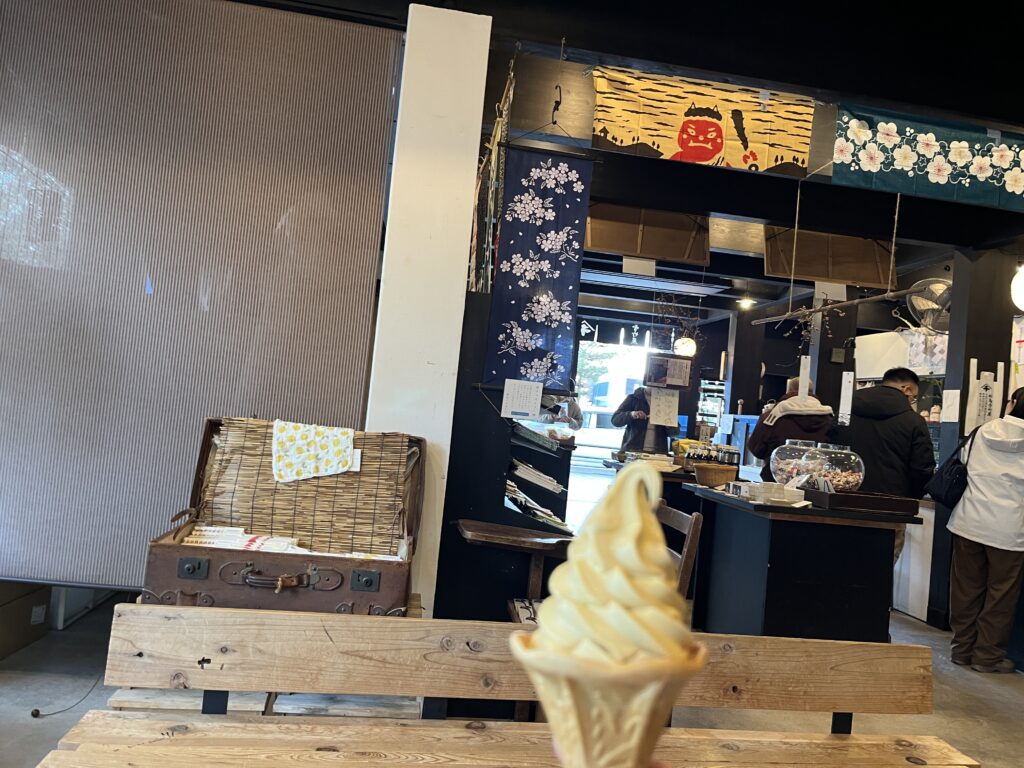 瑞巌寺のある松島海岸には、お土産物屋さんなどがたくさんあります。ここで蜜芋ソフトをいただき、休憩しました。