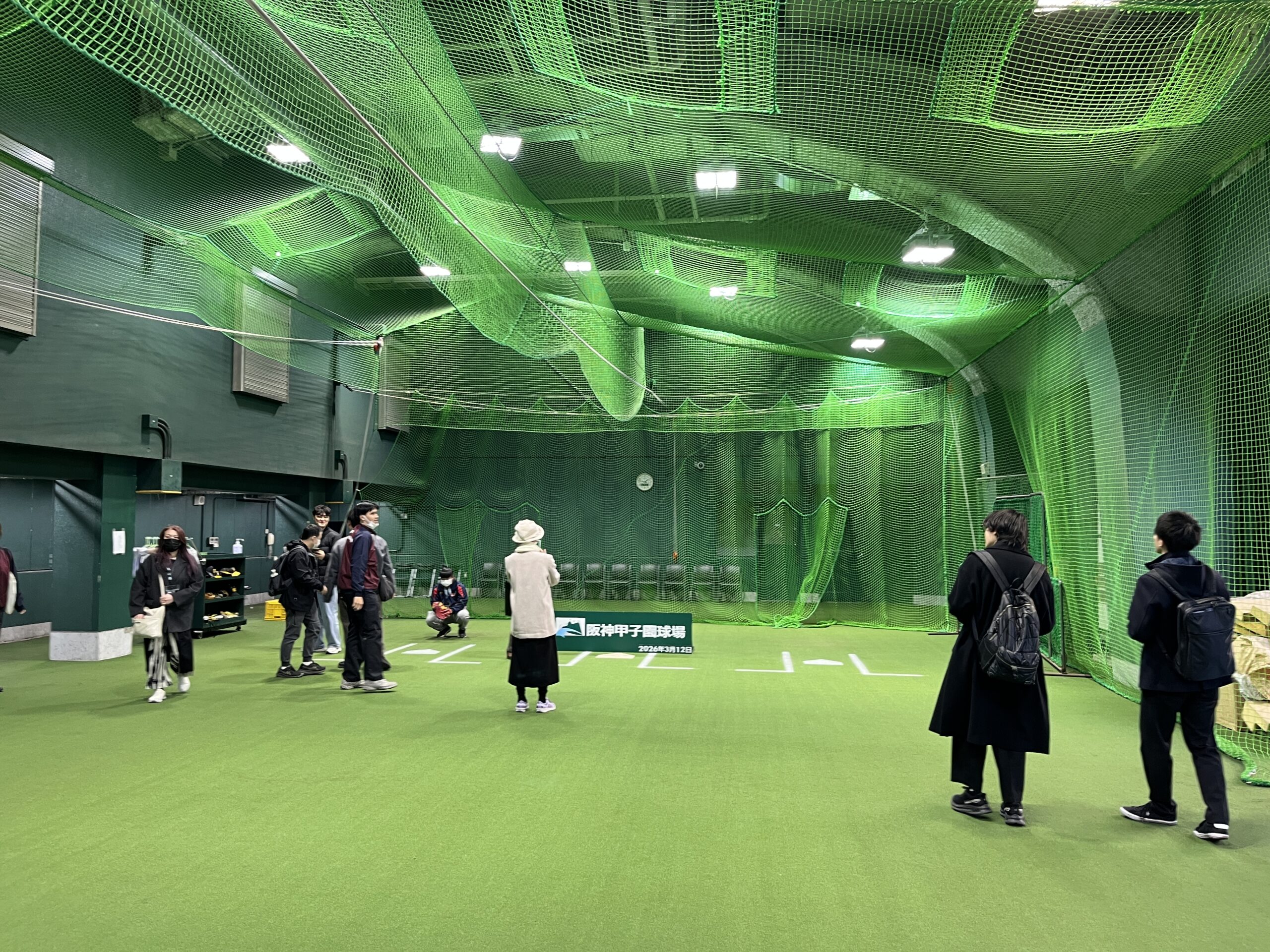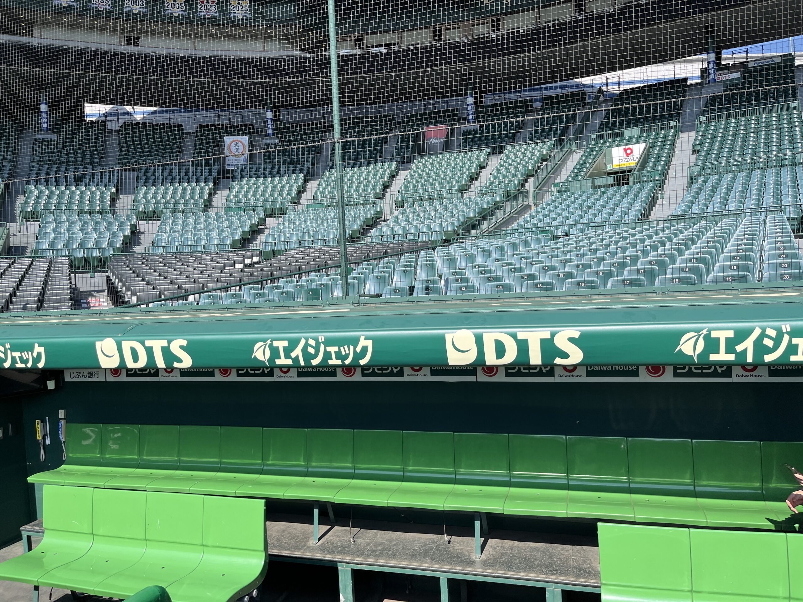 3塁側ベンチに入りました。行ったときは、もうすぐセンバツ高校野球が始まる時期でした。いろいろな場所で準備をしていました。