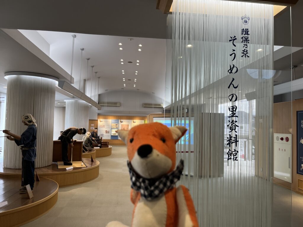 揖保乃糸そうめんの里です。工場があるのですが、そこに隣接して、そうめんのレストランと資料館があります。資料館は結構見ごたえがあるし、そうめんなどの買い物もできます。