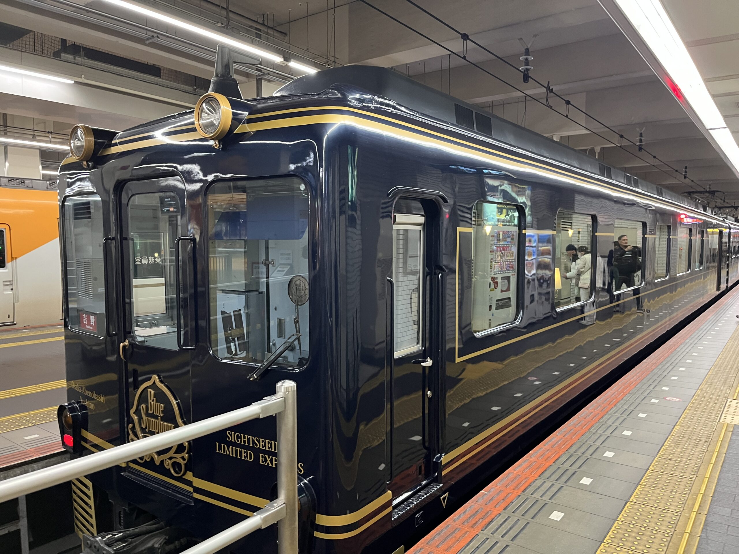 大阪の阿部野橋駅より近鉄の特急、青のシンフォニーに乗って、吉野を目指します。とても豪華な室内の列車でした。1時間ちょっとで着くのがもったいないぐらい。