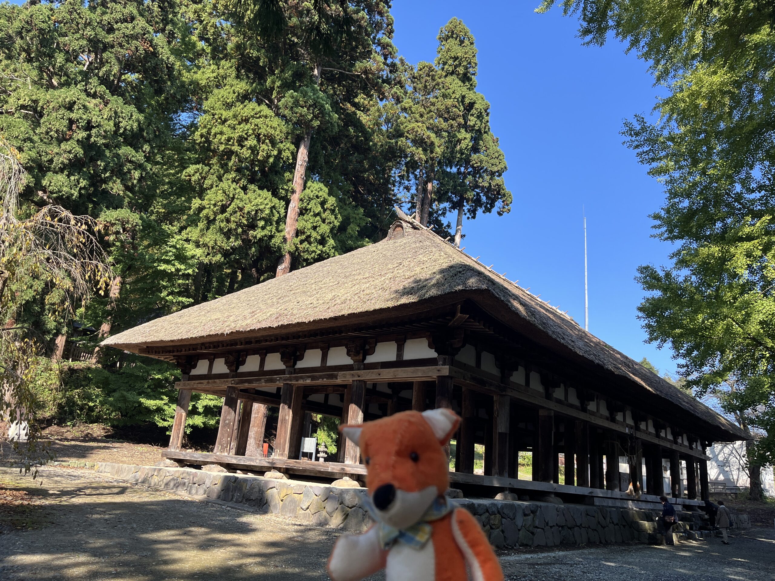 喜多方で最初に着いたのは、熊野神社です。写真は拝殿である「長床」という建物です。中に入って、お参りすることができます。