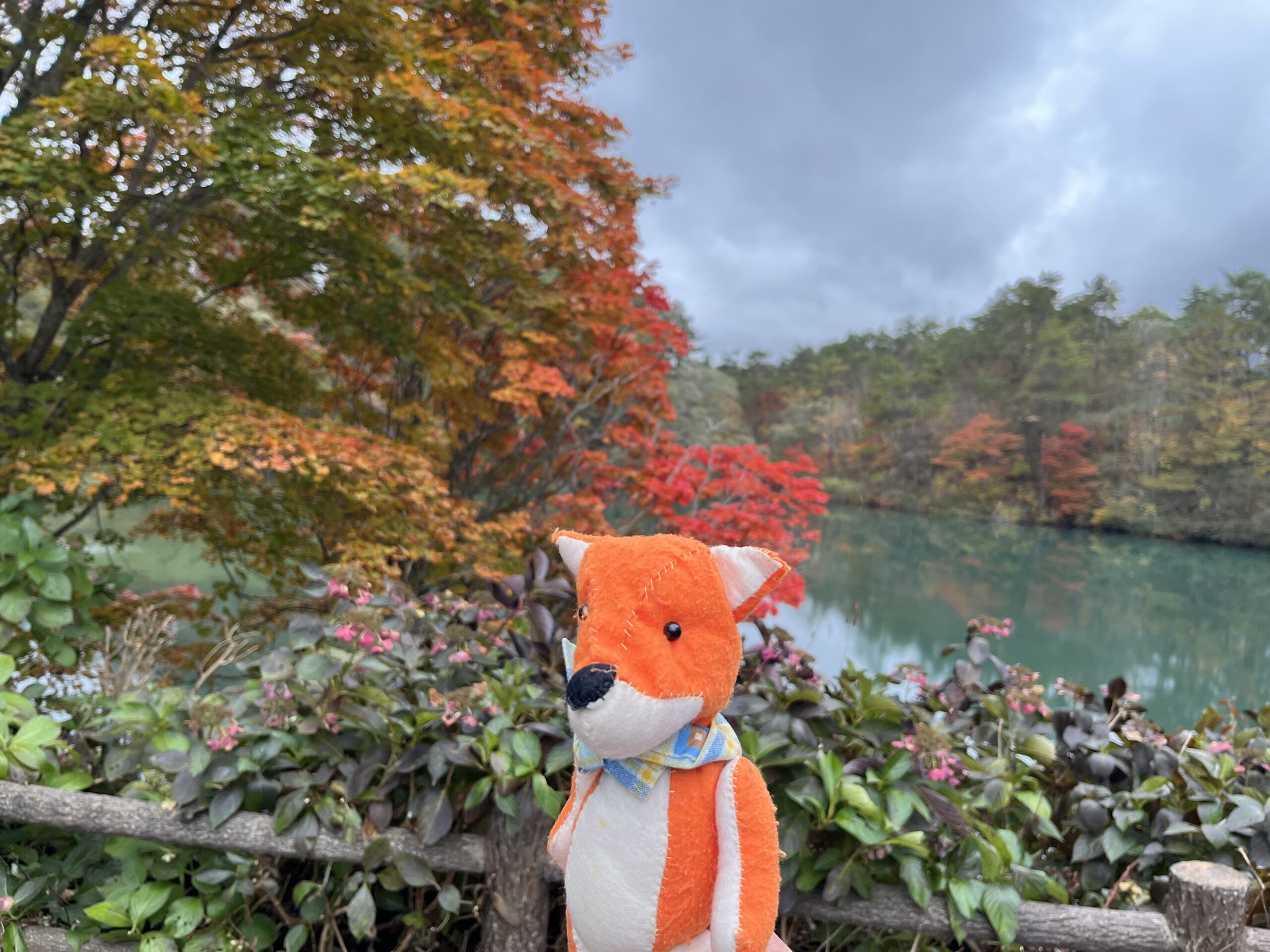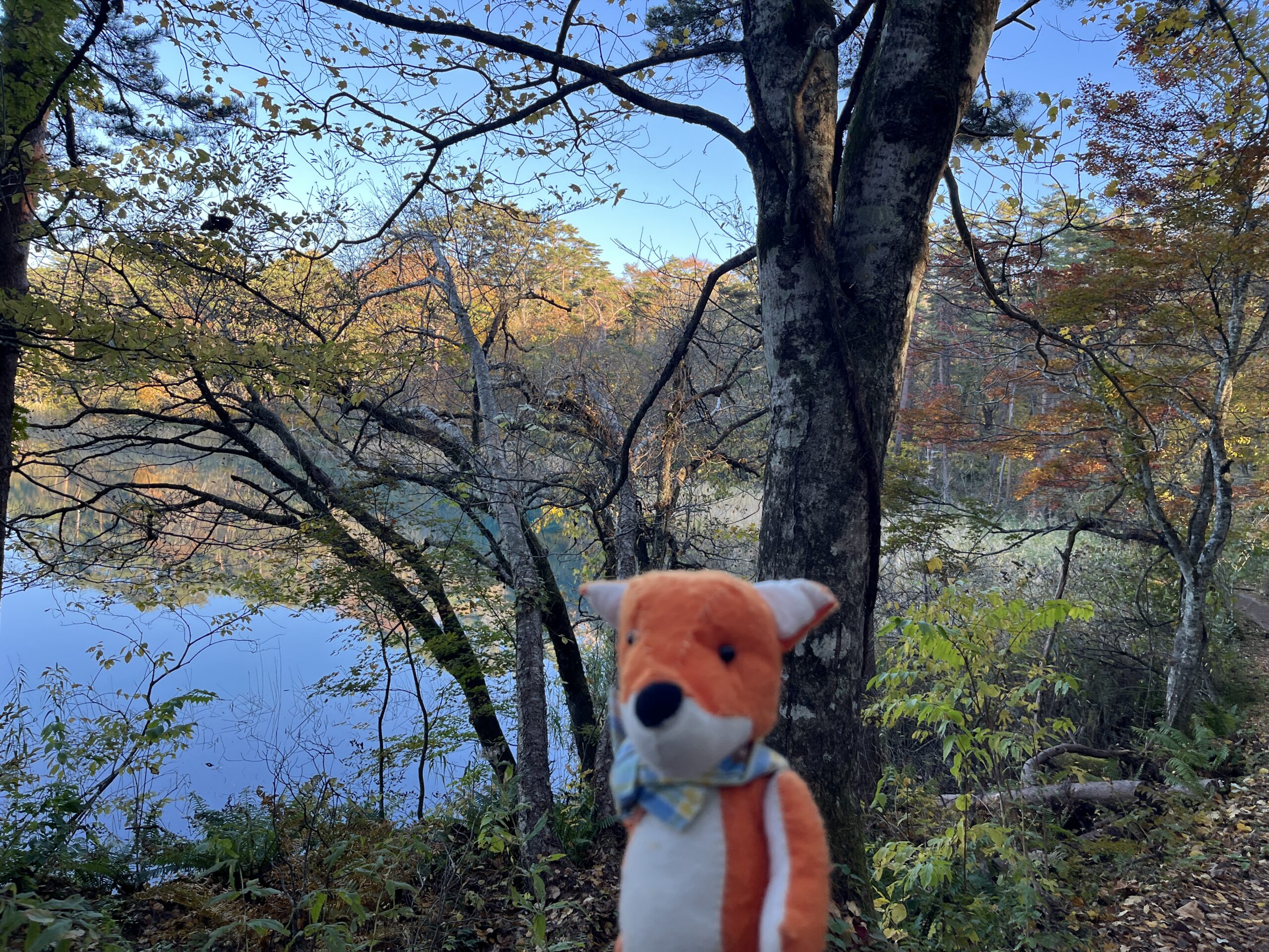 2日目の朝は、五色沼の東側へ行きました。ここは毘沙門沼(びしゃもんぬま)です。紅葉の色が鮮やかで、いろいろな色があり、楽しめます。