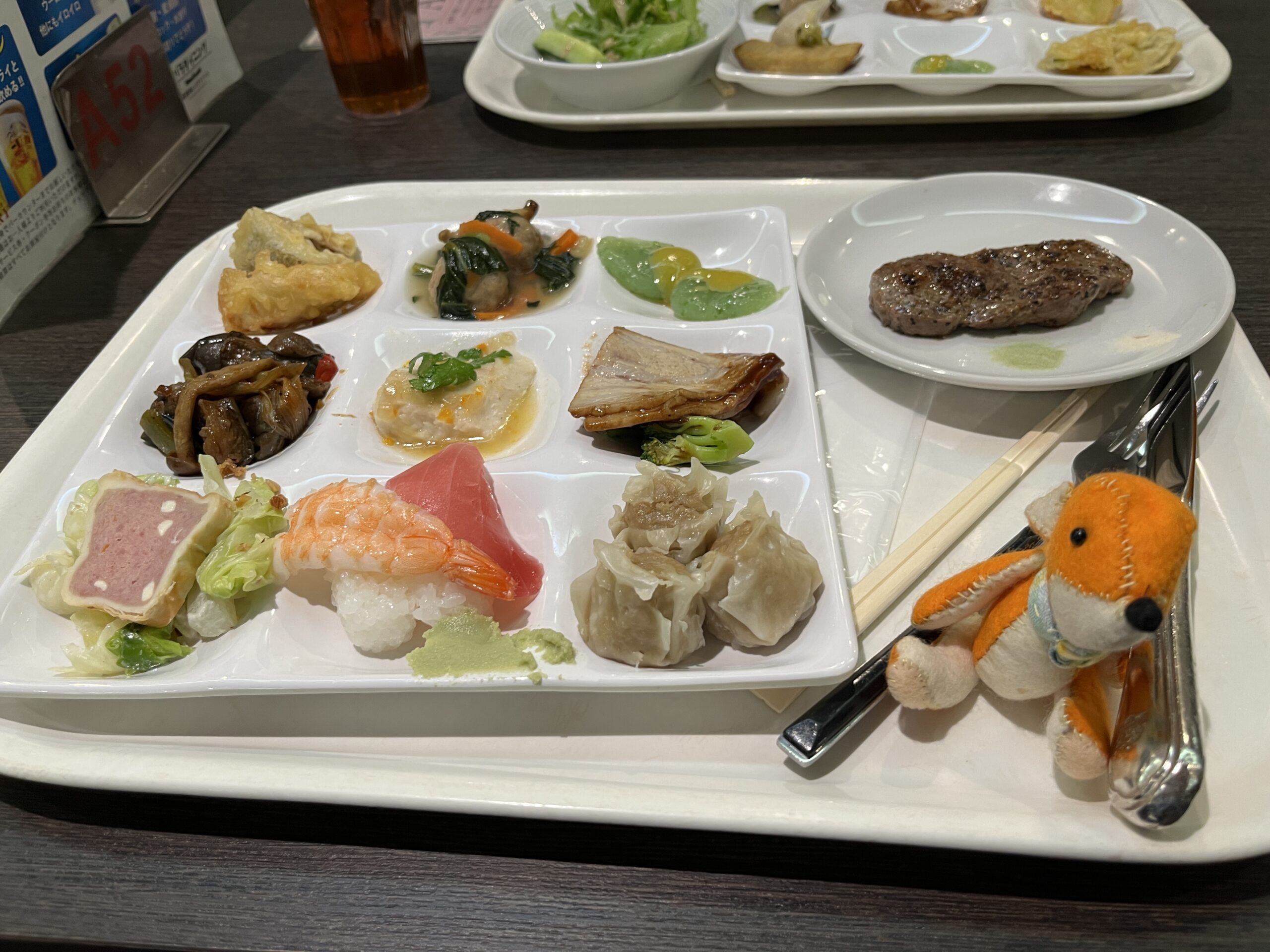 ホテルの夕食はバイキングでした。いろいろあると、つい食べ過ぎてしまいます。