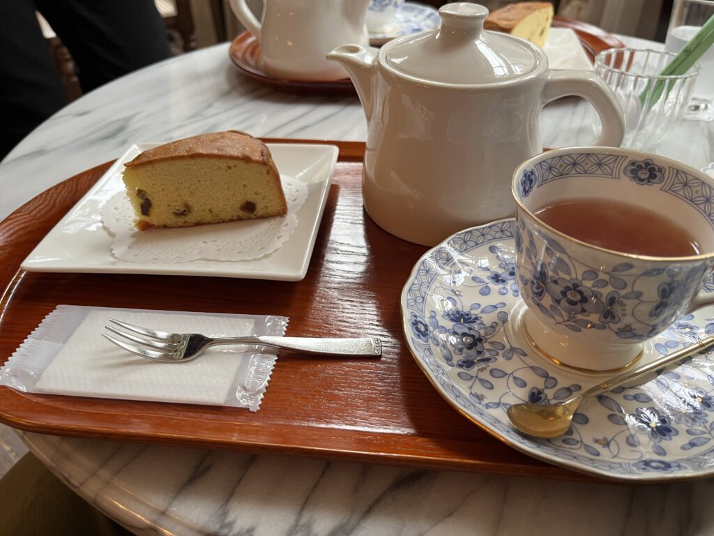 天鏡閣の食堂では、紅茶とケーキを食べることができます。とてもおいしいフルーツケーキでした。