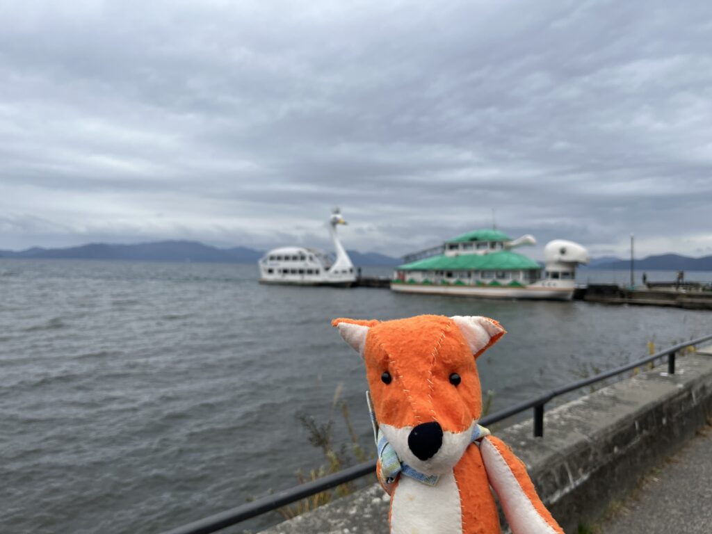 天鏡閣の近くに、猪苗代湖の遊覧船乗り場がありました。ツルの形と、カメの形の遊覧船があります。