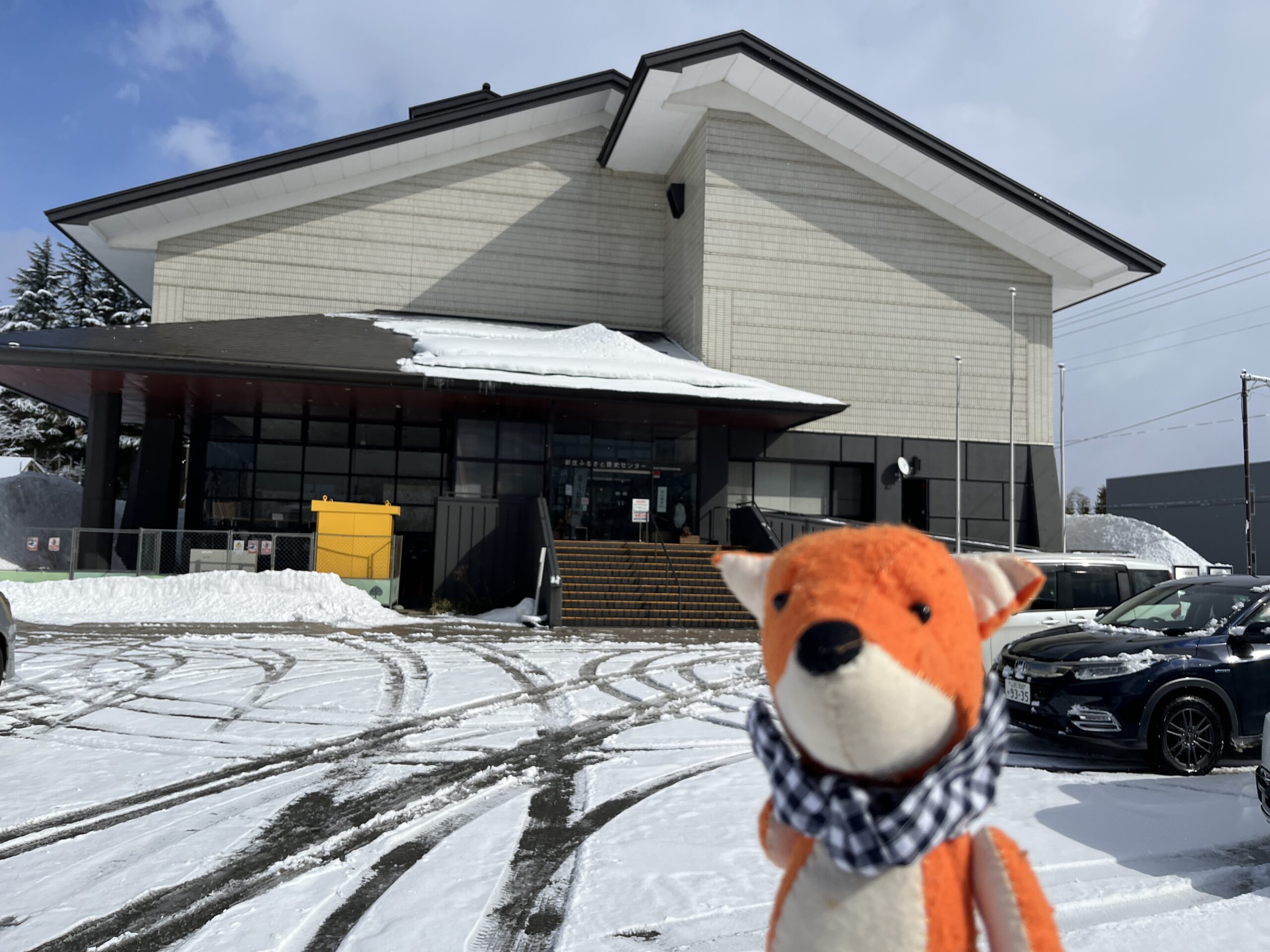 新庄駅から15分ほど歩いてふるさと歴史センターにやってきました。歩道も雪でいっぱいでした。す。