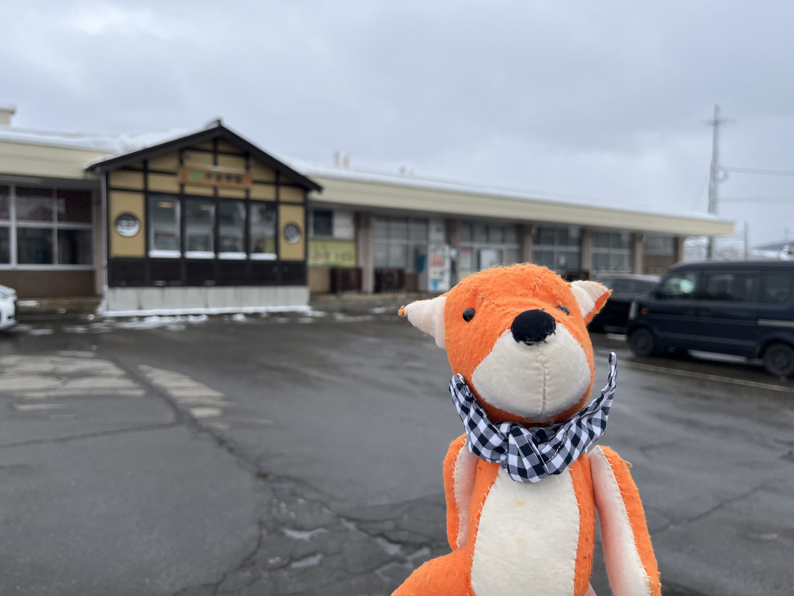 道の駅じゅうもんじです。駅から15分ほど歩きました。いろいろなお店があり、中は暖かいです。(外は0度以下で雪もぱらぱらと)