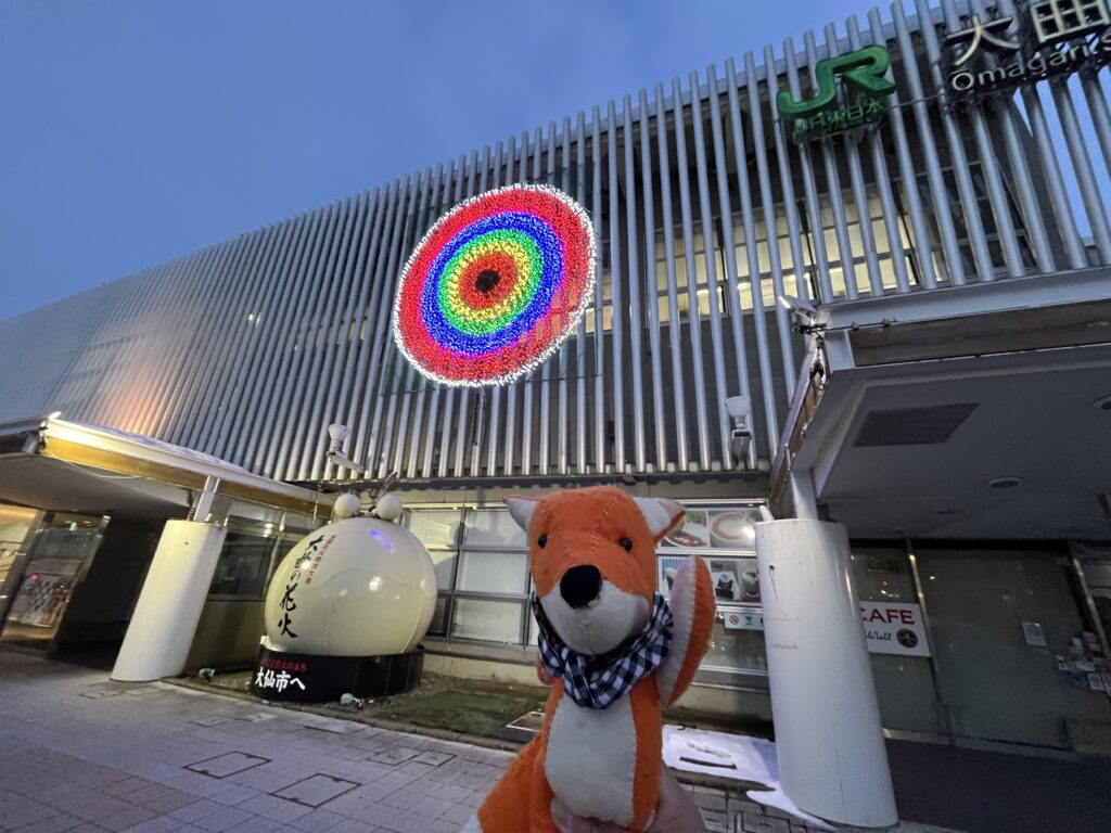 大曲駅に着きました。花火がシンボルですね。